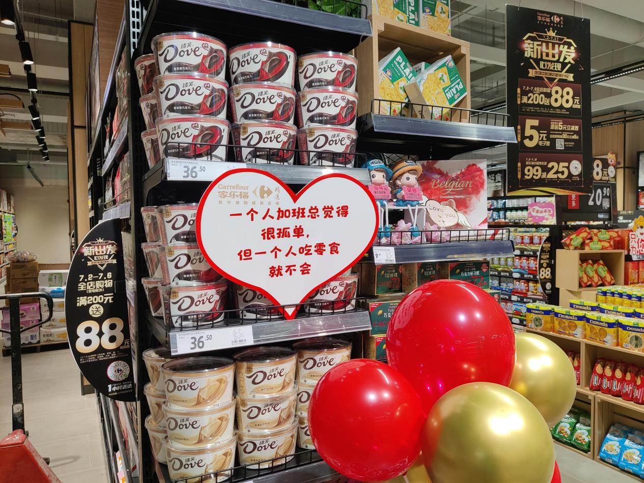 借著盛大開業(yè)的東風,家樂福社區(qū)品質(zhì)中心店推出了“優(yōu)品物語”的趣味逛店活動。該活動,在原本干巴巴的價格指示牌下面增加了諸如,“一個人吃飯很孤單,但一個人吃零食就不會”“隔壁的,你和卷心菜是什么關(guān)系?我是反內(nèi)卷菜系”“櫻桃:要我一口能讓你大紅”“藍莓:我還爆漿!能讓你大紫”等“Z世代”語言,吸引大家來發(fā)掘逛超市的趣味。不但年輕的小情侶可以在下班后默契地相視一笑,也吸引到小紅書的博主們競相探店打卡。既賦予了購物一點有趣和人性化,也給這屆年輕人動輒發(fā)圈、種草的社交型消費加點料。