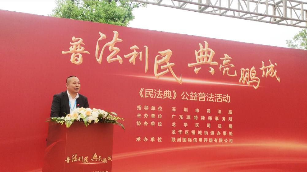 讀特客戶端·深圳新聞網(wǎng)2021年7月29日訊 (記者 常軍平) 昨日,由深圳市司法局指導(dǎo)、廣東瑞特律師事務(wù)所主辦、龍華區(qū)司法局、龍華區(qū)福城街道辦事處、深圳潮青會(huì)協(xié)辦、聯(lián)洲國際信用評(píng)級(jí)有限公司承辦的“普法利民,典亮鵬城”《民法典》公益普法活動(dòng)在龍華舉行。
