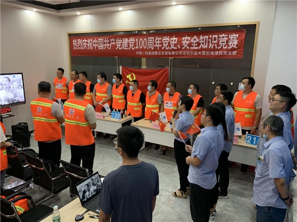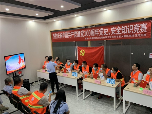 讀特客戶端·深圳新聞網(wǎng)2021年7月30日訊 同心筑夢,百年芳華,為扎實(shí)推進(jìn)黨史學(xué)習(xí)教育走深走實(shí),創(chuàng)新黨史知識學(xué)習(xí)方法,濃厚學(xué)習(xí)氛圍,增強(qiáng)學(xué)習(xí)興趣,近日,中建一局集團(tuán)建設(shè)發(fā)展有限公司深圳宇宏大廈機(jī)電項(xiàng)目黨支部舉辦以慶祝中國共產(chǎn)黨建黨100周年“學(xué)黨史、守初心、保安全、促發(fā)展”為主題的黨史、安全知識競賽。此次活動(dòng)參賽代表隊(duì)是由項(xiàng)目廣大工友組成“忠黨隊(duì)”、“愛國隊(duì)”、“為民隊(duì)”、“筑夢隊(duì)”,共計(jì)50余人參加了本次活動(dòng)。