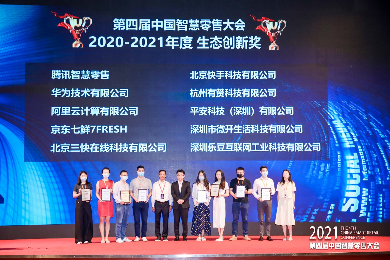 大會開幕式上頒發(fā)“2020-2021年度智慧零售系列大獎”,大會組委會從行業(yè)新技術(shù)應(yīng)用創(chuàng)新;經(jīng)營、商業(yè)、組織、管理、服務(wù)等模式創(chuàng)新;全渠道、全產(chǎn)業(yè)鏈、全生產(chǎn)要素賦能等生態(tài)創(chuàng)新;領(lǐng)軍者推動智慧零售創(chuàng)新發(fā)展等四個維度,共頒發(fā):新技術(shù)應(yīng)用創(chuàng)新獎、模式創(chuàng)新獎、生態(tài)創(chuàng)新獎、創(chuàng)新人物獎四大獎項。華潤萬家、靈智數(shù)科、有贊、樂信等企業(yè)獲此榮譽(yù),天虹股份譚曉華、百果園焦岳等人獲得創(chuàng)新人物獎。