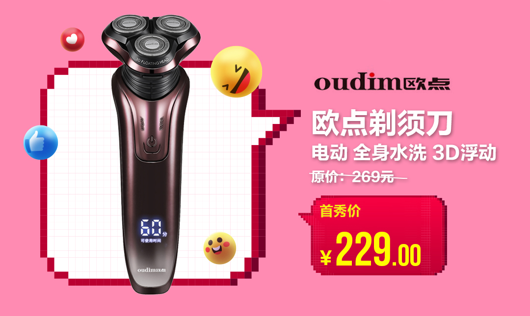 在女生眼中,白白凈凈的男生更具吸引力,而胡子拉碴的男生難免會(huì)被貼上不講衛(wèi)生、不愛(ài)干凈、不注重自己形象的標(biāo)簽。鑒于此,“真快樂(lè)”APP為男同胞們帶來(lái)了一款實(shí)力硬核的歐點(diǎn)電動(dòng)剃須刀,它采用了雙環(huán)圓弧刀網(wǎng),讓剃須更快、更凈、更爽。這樣的心水好物,首秀價(jià)只要229元,助你秒變小鮮肉。