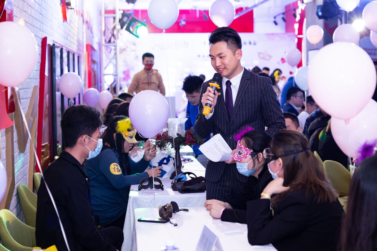 雖然舞會(huì)在晚上7:00 オ正式開始,但是剛過下午六點(diǎn)現(xiàn)場(chǎng)氛圍已濃,已經(jīng)到場(chǎng)的青年嘉賓們有說有笑,興奮地等待舞會(huì)地開始。7:00分隨著主持人上臺(tái)舞會(huì)正式拉開序幕,到場(chǎng)嘉賓各自佩戴著主辦方精心準(zhǔn)備的面具緩入場(chǎng)。