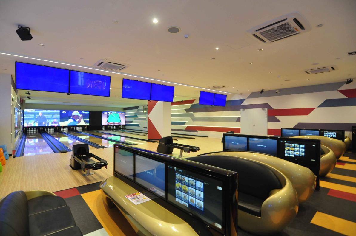 保齡球區(qū)域,朗玩的保齡球采用了美國Brunswick公司最新的保齡球機(jī)。在放置保齡球瓶的上方墻面上,設(shè)置了放映各種運(yùn)動、音樂節(jié)目的大屏幕。四周設(shè)有的攝像鏡頭能夠全方位捕捉玩家們投球瞬間,在大屏幕上可以看到這些精彩瞬間。采用了鐳射光線等技術(shù)的華麗活動(月光投球游戲)每小時都會進(jìn)行一次,閃耀炫酷的設(shè)計會顛覆玩家們一直以來對于保齡球的認(rèn)知!