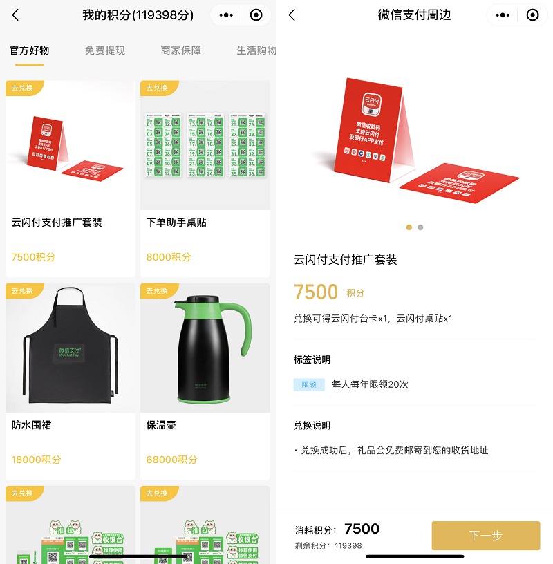 記者了解到,線下門店出現(xiàn)的宣傳物料是微信支付積極落實互聯(lián)互通的又一舉措,目前微信支付與銀聯(lián)云閃付 App已實現(xiàn)線下所有條碼的互認(rèn)互掃,用戶可通過云閃付App直接掃描微信支付各類收款二維碼并完成付款。商家可在“收款小賬本”微信小程序,進入“我的積分”頁面,使用積分兌換“云閃付支付推廣套裝”,此外購買“微信官方收款碼”也可同時獲取云閃付相關(guān)物料。