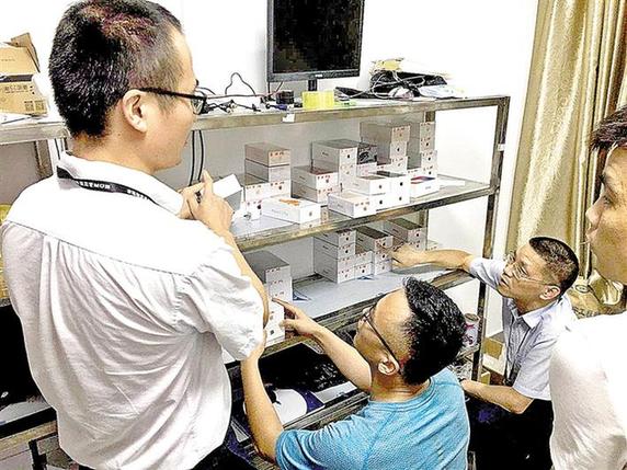 一個偽劣手機產(chǎn)品制假窩點,現(xiàn)場查獲涉嫌假冒注冊商標蘋果手機95部,有配件無機身的手機盒73盒等。