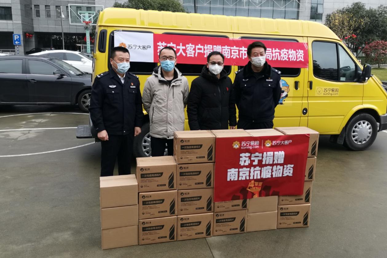 蘇寧大客戶在保障政企單位采購的同時(shí),在復(fù)工第一周為南方電網(wǎng)和南京市公安局捐贈(zèng)了酒精消毒棉片、免洗洗手液及次氯酸鈉消毒液等防疫物資。