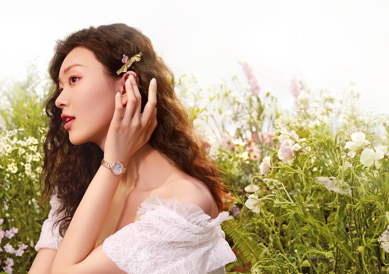 ?本次天天王表聯(lián)名 She’s飾品推出的新品腕表,就很好利用了蝴蝶這一元素,遠(yuǎn)觀貝母表盤下方兩只蝴蝶深情對(duì)望翩然起舞,細(xì)看竟還有滿盤的裸色印壓蝴蝶,著實(shí)精致巧妙,不同于《愛蓮說(shuō)》中的“可遠(yuǎn)觀而不可褻玩焉,蝴蝶腕表可謂是兼具觀賞和把玩兩大功能,優(yōu)雅時(shí)尚又充滿浪漫色彩。