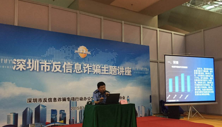 “針對信息詐騙犯罪高發(fā)的態(tài)勢,今年8月1日,我市開展以深圳市政法委書記李華楠同志為領導小組組長的反信息詐騙犯罪專項行動,為期半年。此次專項行動主要集中公安、銀行、通信、工商、網(wǎng)絡企業(yè)等專業(yè)力量共同打擊信息詐騙犯罪。經(jīng)過合成打擊、宣傳防范、警信警銀合作、對策研究等多個方面的工作,8月1日至10月25日,全市共立信息詐騙案件環(huán)比下降了13.9%;破信息詐騙案件280宗,環(huán)比260宗上升了7.7%;逮捕涉信息詐騙犯罪嫌疑人190人,環(huán)比149人上升了27.5%;打掉涉信息詐騙犯罪團伙19個,環(huán)比19個持平;凍結涉案賬戶203個,資金3089.9萬元?!鄙钲谑泄簿中虃删执箨犻L朱海在講座上分享道。