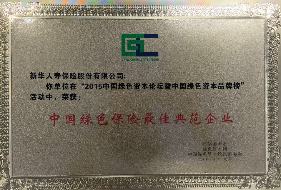 中國(guó)綠色保險(xiǎn)最佳典范企業(yè)