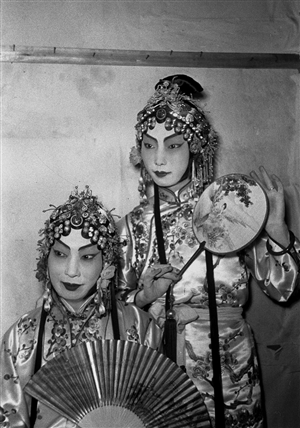 他10歲學(xué)藝,13歲正式登臺(tái)演出《玉堂春》、《四郎探母》等劇目,彼時(shí)的中國正值抗戰(zhàn)的危難時(shí)期,風(fēng)雨飄搖,他的父親為彰顯民族氣節(jié),正蓄須明志,暫別舞臺(tái)。我們在流傳下來的文獻(xiàn)照片中,只能看見一個(gè)面容清秀的少年,安靜地立于他名聲浩蕩的父親的身后,身體微微前傾——除此之外,我們沒法更多地捕捉到這對(duì)父子之間情感上的細(xì)節(jié),那黑白的畫面,靜穆而有意地拒絕向后人傳遞出更多的信息。