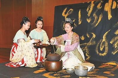 唐風(fēng)煮茶的儀式優(yōu)雅地緩緩進行。