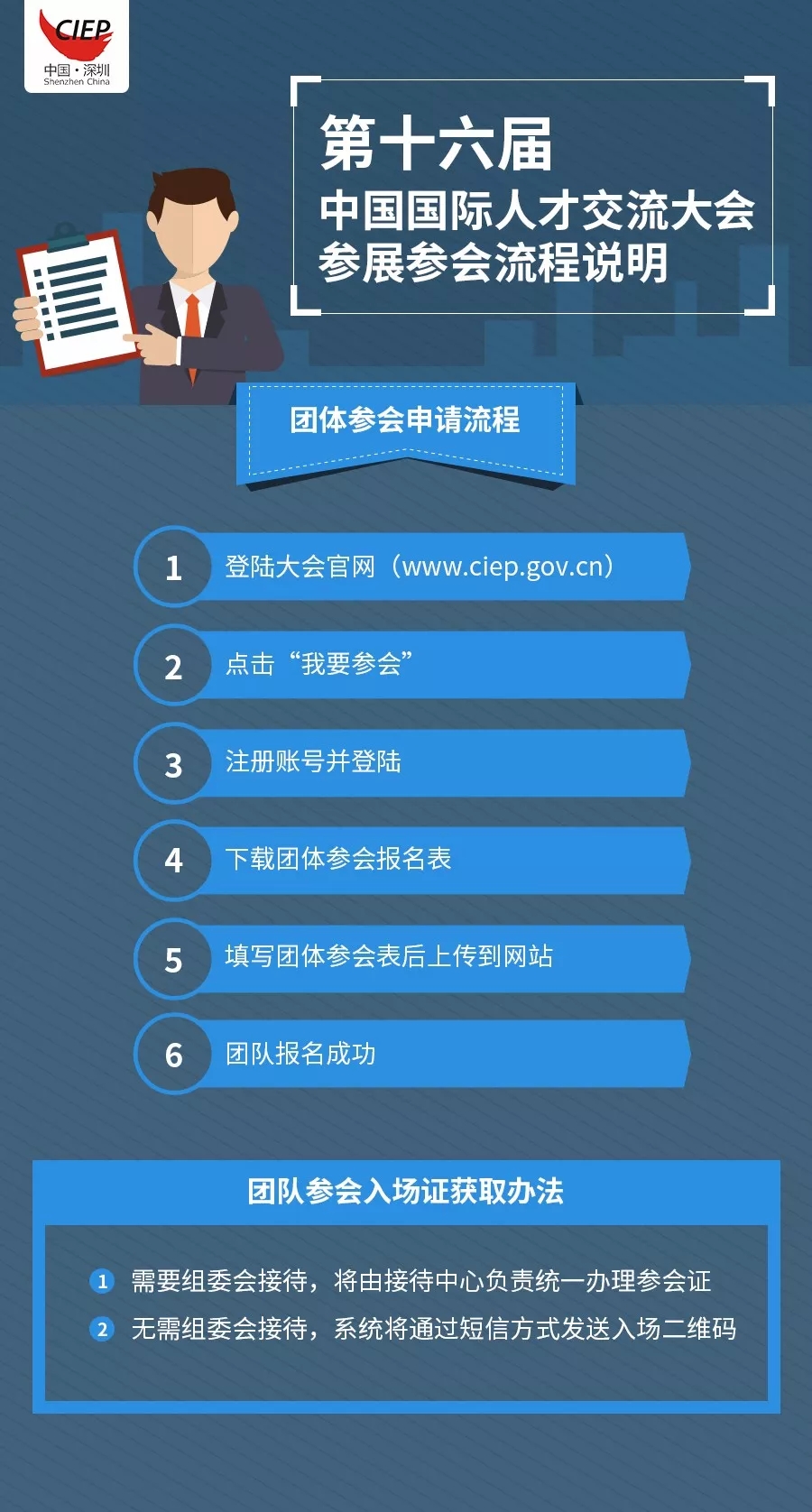 中國國際人才交流大會是經(jīng)國務院批準,由國家外國專家局于2001年創(chuàng)辦,我國目前唯一面向外國專家組織、培訓機構(gòu)、專業(yè)人才開放的規(guī)模最大、規(guī)格最高的,集人才、智力、技術(shù)、項目和管理為一體的國家級、國際化、綜合性的人才與智力交流盛會。2001年至2005年,大會由國家外國專家局和江蘇省人民政府主辦;2006年,由國家外國專家局和國務院振興東北辦、遼寧省人民政府主辦;2007年,大會首次移師深圳,至今已連續(xù)成功地舉辦了十屆,由國家外國專家局和深圳市政府主辦,并長期落戶深圳。