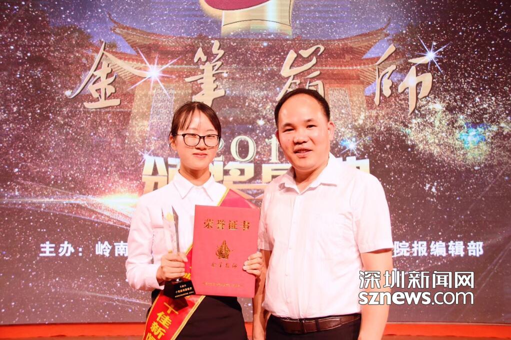 林老師受邀參加"金筆嶺師"的頒獎盛典,為深圳二外2016屆學生王啟丹頒獎
