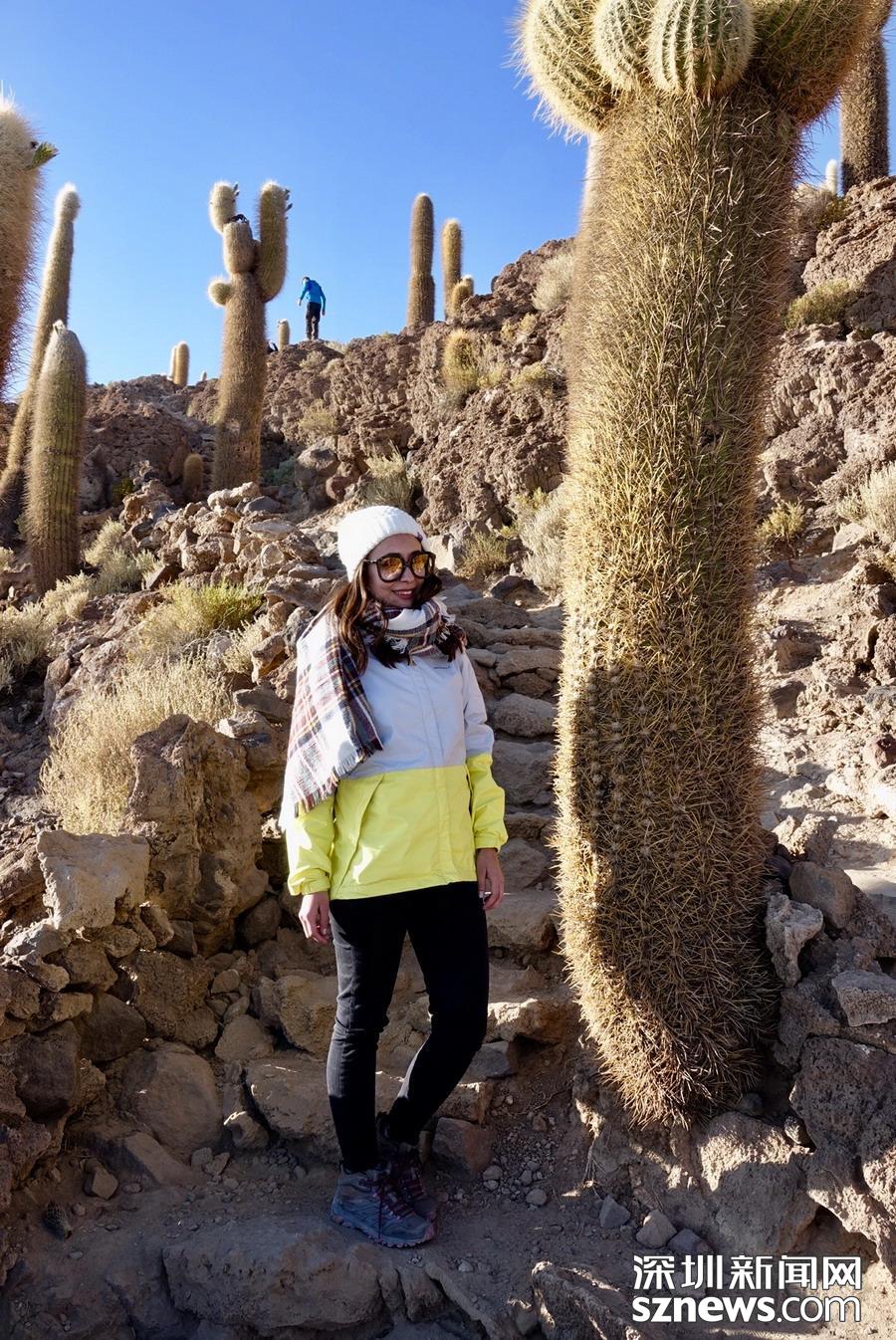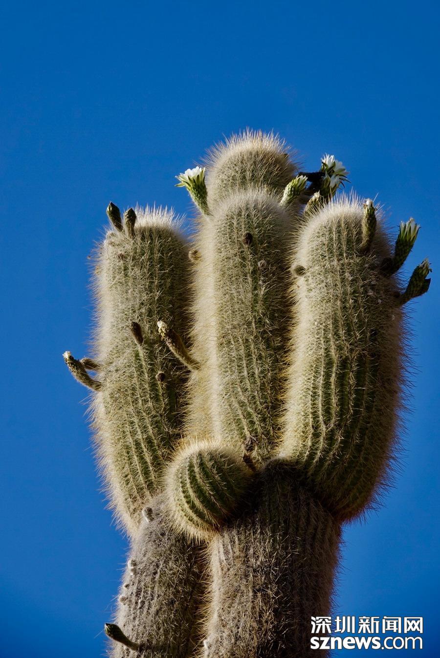 深圳新聞網(wǎng)訊 烏尤尼鹽沼中,有一個孤立的小山頭,猶如瀚海中的小島。島上長滿巨大的仙人柱,據(jù)說有的已經(jīng)生長了上千年。這種形狀各異、耐鹽堿、耐干旱的熱帶植物豐富了鹽沼的風光,構(gòu)成絕無僅有的世界奇觀。 李仁奇 攝