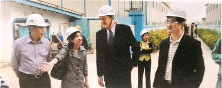 柯剛明(右一)陪同國(guó)際大體聯(lián)官員考察大運(yùn)村建設(shè)。圖片由受訪者提供