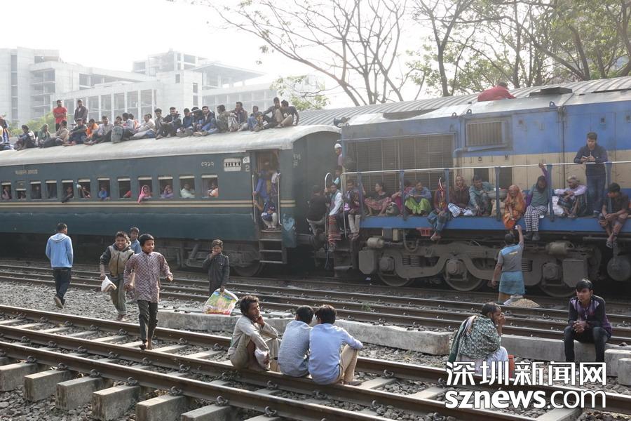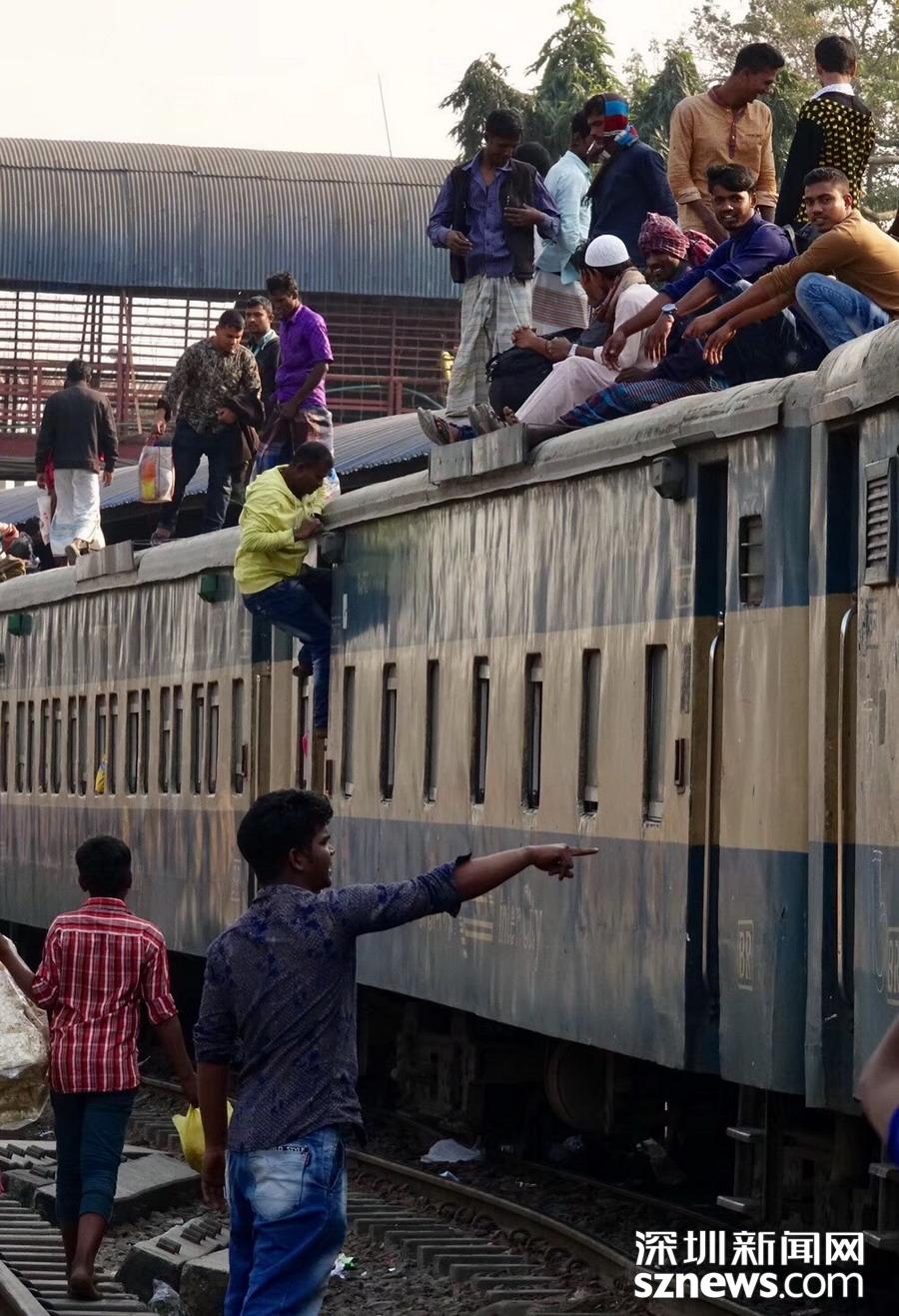 孟加拉國有大量貧困人口,很多乘坐中短途列車的人為節(jié)省車票費用,不惜冒險登上車頂。政府和鐵路部門原本禁止此類行為,但因運(yùn)力不足、法不治眾、人力有限,后來便默許了。李仁奇攝