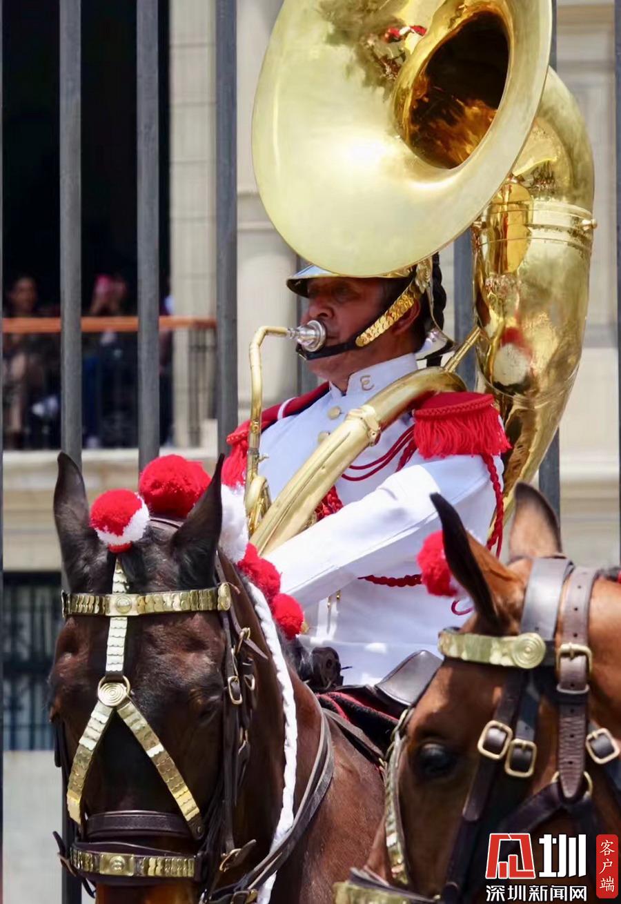 可能也與秘魯民俗有關(guān),秘魯國(guó)家軍樂(lè)隊(duì)也會(huì)同時(shí)在利馬總統(tǒng)府門(mén)前廣場(chǎng)公開(kāi)盛裝演練,市民都可以近距離觀賞。李仁奇攝