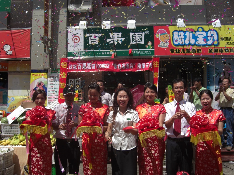2007年7月18日,百果園第100家門店,深圳金色家園店開(kāi)業(yè)。
