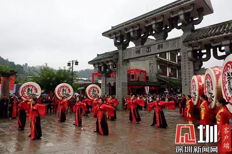 郪江古鎮(zhèn)古典風(fēng)格的迎賓儀式和民俗風(fēng)情展示。李仁奇攝