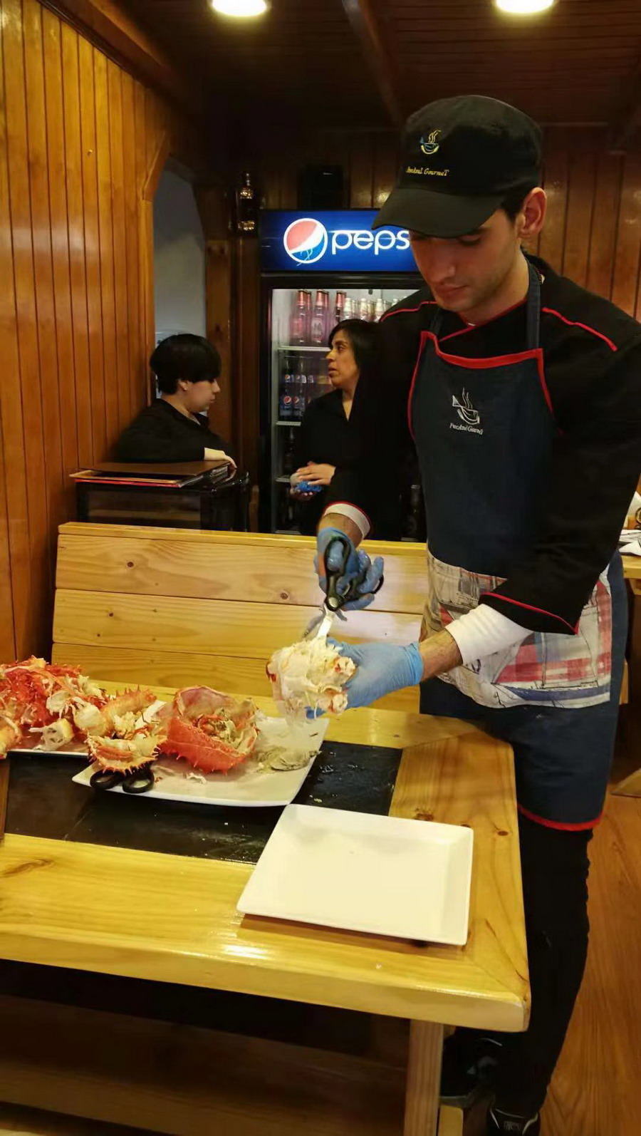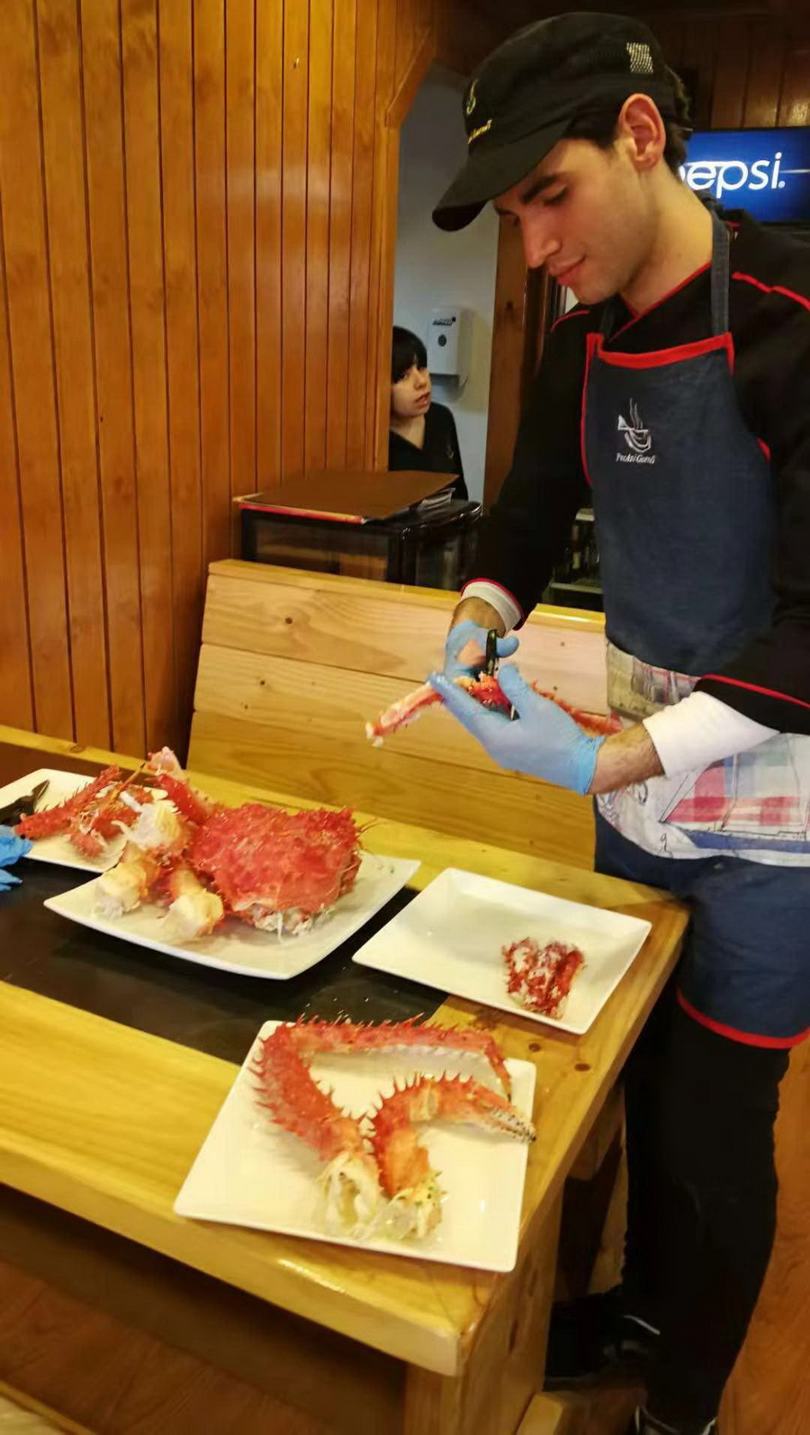 蜘蛛蟹(又名皇帝蟹)只產(chǎn)于南北兩極冰冷的海洋中,大個(gè)的重量可達(dá)5公斤以上。資深旅游者大多知道美國(guó)阿拉斯加的蜘蛛蟹是當(dāng)?shù)靥禺a(chǎn)美味,但很多人并不了解智利、阿根廷接近南極洲的海域有比阿拉斯加蜘蛛蟹更大、味道更好、價(jià)格更低的同類海產(chǎn)品。李仁奇攝