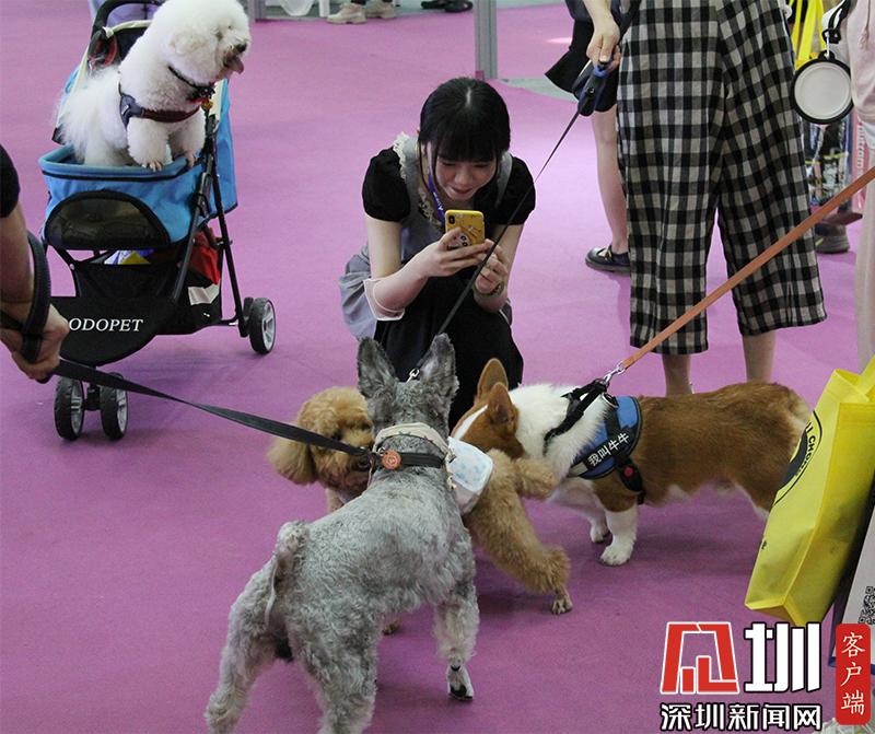市民在現場給參展的寵物狗們拍照。