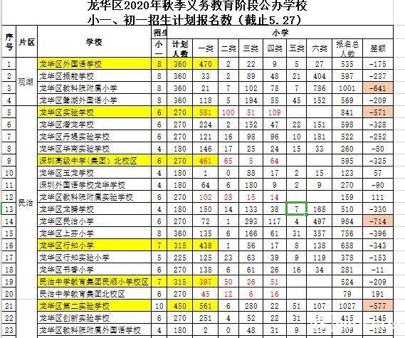 龍華區(qū)公辦學校小一、初一計劃報名數(shù)(市民供圖)