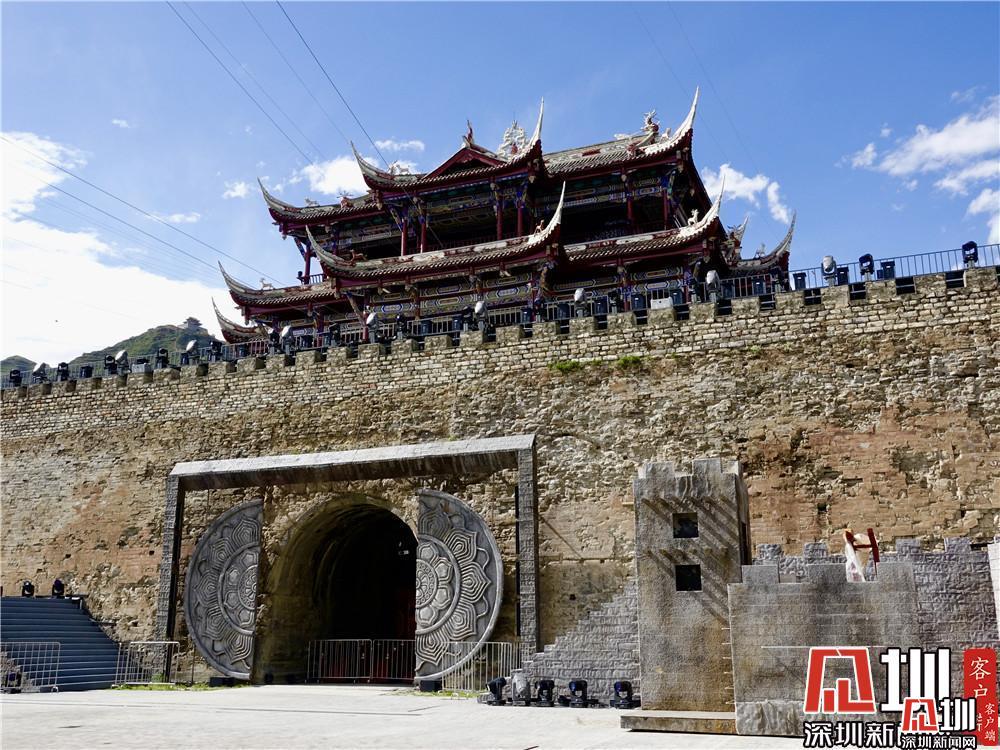 松潘古城分內(nèi)、外兩城,內(nèi)城平面跨崇山,依山順勢(shì)略呈三角形,城墻總長(zhǎng)6.2公里,用本地?zé)频那啻u砌成墻身,內(nèi)填土石,高12.5米,厚12余米,以糯米、石灰、桐油熬制的灰漿勾縫,十分堅(jiān)固。各城門(mén)以大塊規(guī)則的長(zhǎng)方條石券拱而成。李仁奇攝