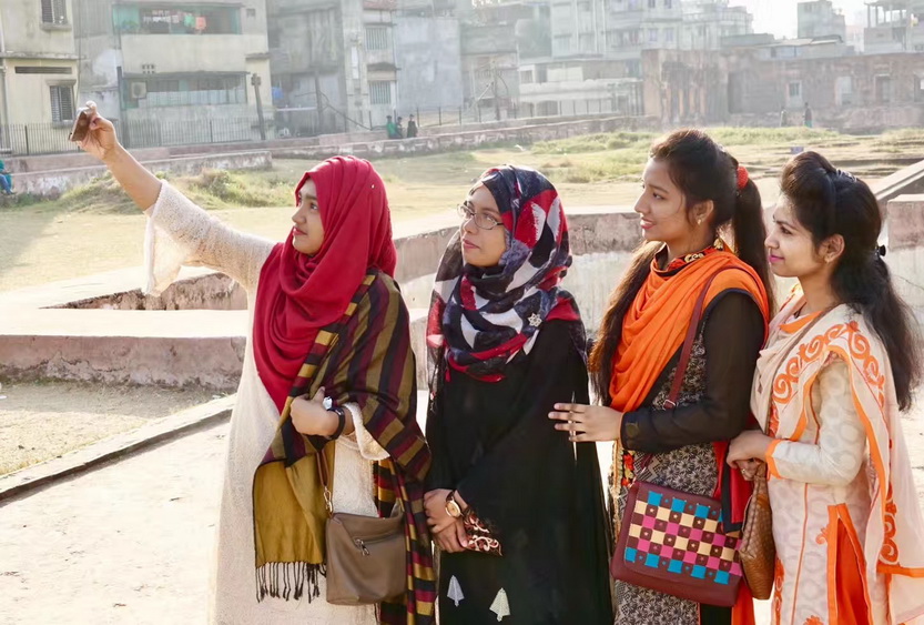 在達(dá)卡幾天時間里,感覺孟加拉國盛產(chǎn)美女,加之她們喜歡鮮艷的服飾,一些年輕女性就顯得更加靚麗。李仁奇 攝