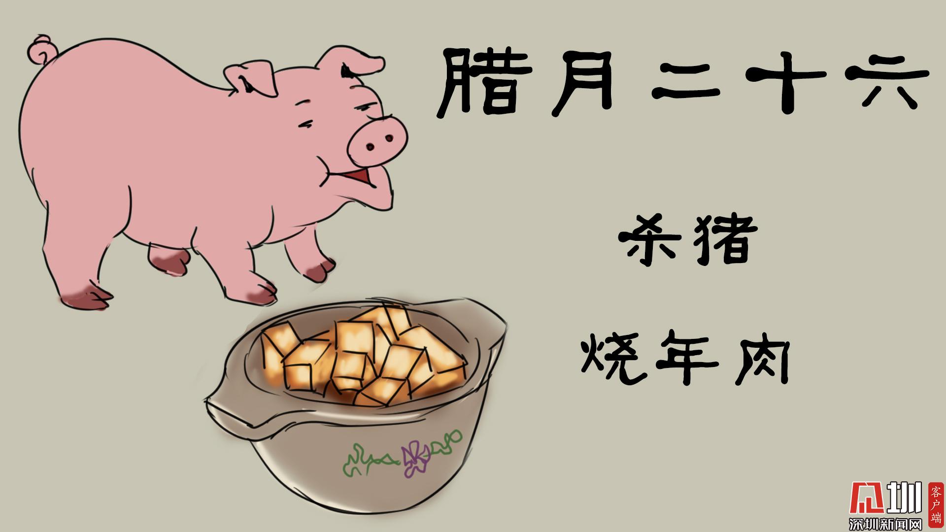 臘月二十六要殺豬燒年肉,開始置辦年貨。殺豬,是指殺自己家養(yǎng)的豬;割肉是指沒養(yǎng)豬的人到集市上去買肉。以前經(jīng)濟不發(fā)達,人們往往在年節(jié)時才能吃到肉,故稱為“年肉”。