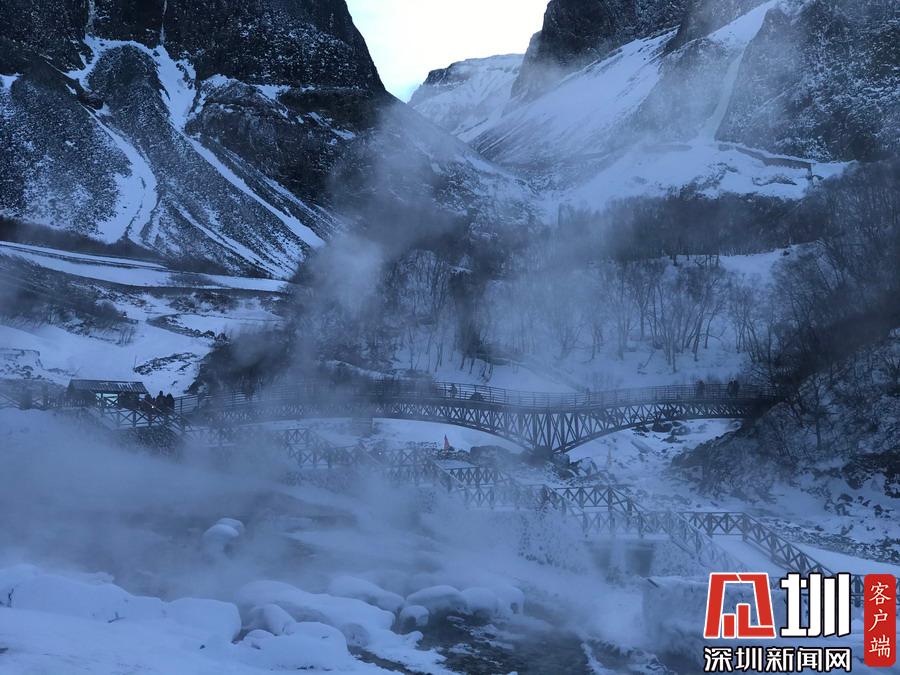 溫泉熱氣蒸騰,煙霧繚繞,在其中行走仿佛在仙境中游覽。