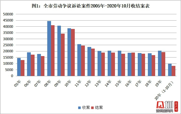 深圳市中級人民法院勞動爭議審判庭(以下稱深圳中院勞動庭)于2005年4月成立,是全國法院系統(tǒng)第一家專業(yè)審判庭。深圳部分基層法院也相繼成立專業(yè)審判庭或指定某一派出法庭集中審理勞動爭議案件。勞動爭議糾紛受經(jīng)濟發(fā)展水平、國家政策、就業(yè)環(huán)境等影響較大,一定程度上是經(jīng)濟發(fā)展和社會和諧度的晴雨表。深圳企業(yè)林立,被喻為“世界工廠”,大量的外來務工人員在本市就業(yè),深圳法院勞動爭議十五年來的審理情況反映著我國經(jīng)濟最活躍地區(qū)不斷變化的勞資關系狀況。