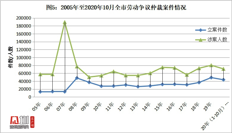 記者從發(fā)布會上獲悉,《勞動合同法》頒布實施之前,勞動爭議案件數(shù)量相對平穩(wěn),波動不大。2008年前后受到《勞動合同法》頒布實施和全球金融危機的雙重影響,進入訴訟渠道的勞動爭議案件呈井噴式增長。2011年之后,隨著國內(nèi)外經(jīng)濟形勢好轉、用人單位用工方式的逐步規(guī)范以及政府主管部門執(zhí)法力度加大,勞資關系趨于穩(wěn)定,案件數(shù)量逐步回落。自2011年至今,深圳兩級法院受理的各類勞動爭議案件數(shù)量漸趨平穩(wěn),甚至有所下降。目前,案件數(shù)量已經(jīng)基本恢復至2008年之前的水平,但在全國范圍內(nèi),案件絕對數(shù)量仍然位于前列。