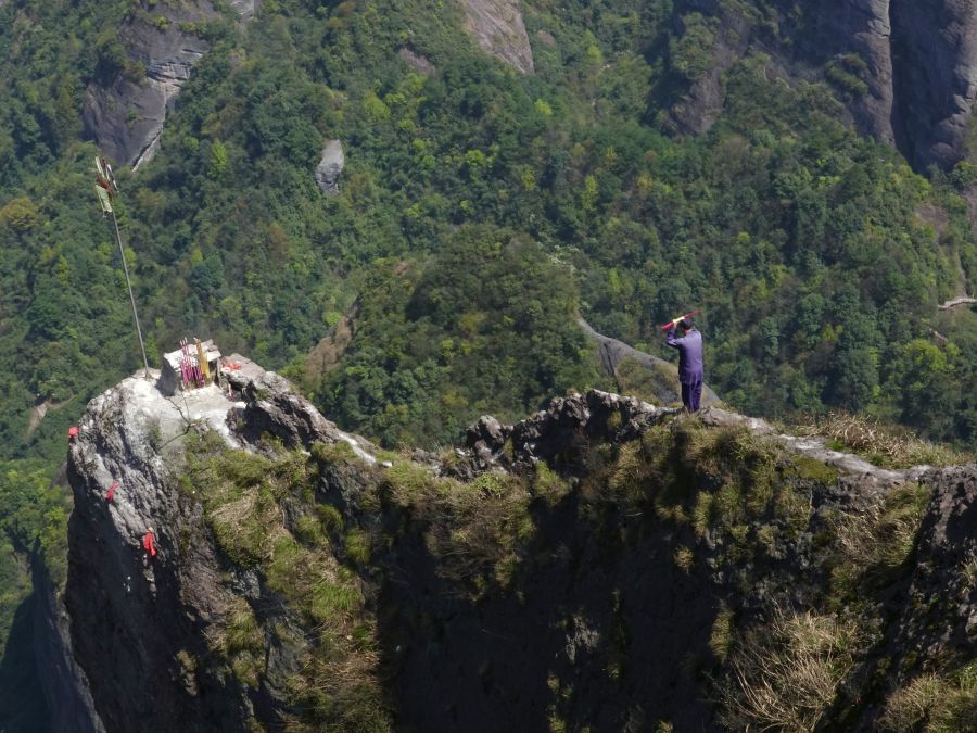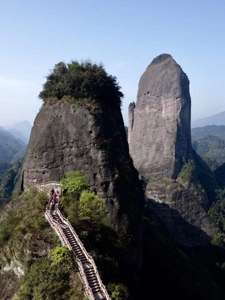 乘索道或步行登上八角寨觀景臺(tái)可以俯瞰崀山丹霞的全貌。李仁奇 攝