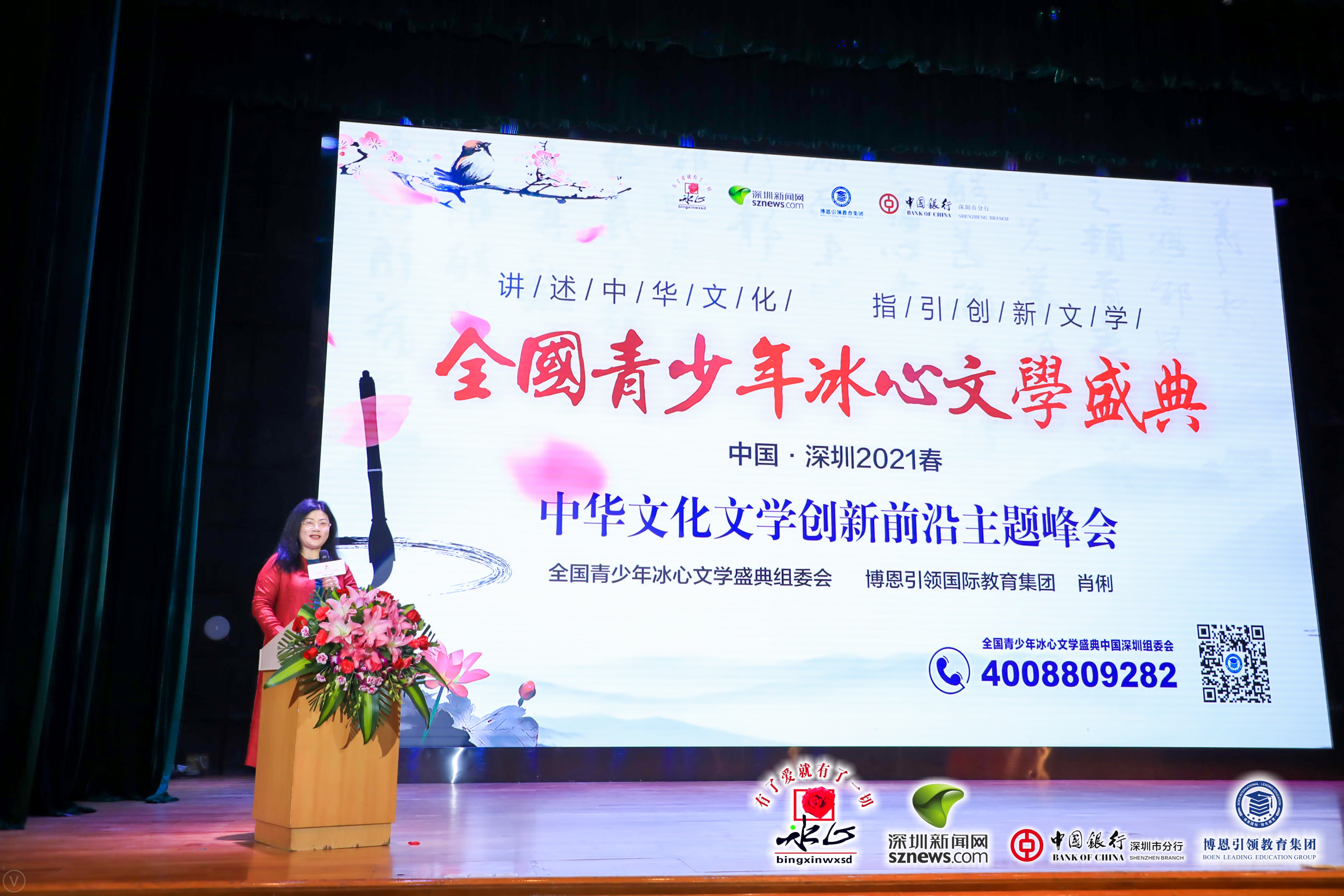 全國(guó)青少年冰心文學(xué)盛典中國(guó)·深圳組委會(huì)、博恩引領(lǐng)教育集團(tuán)負(fù)責(zé)人肖俐致辭