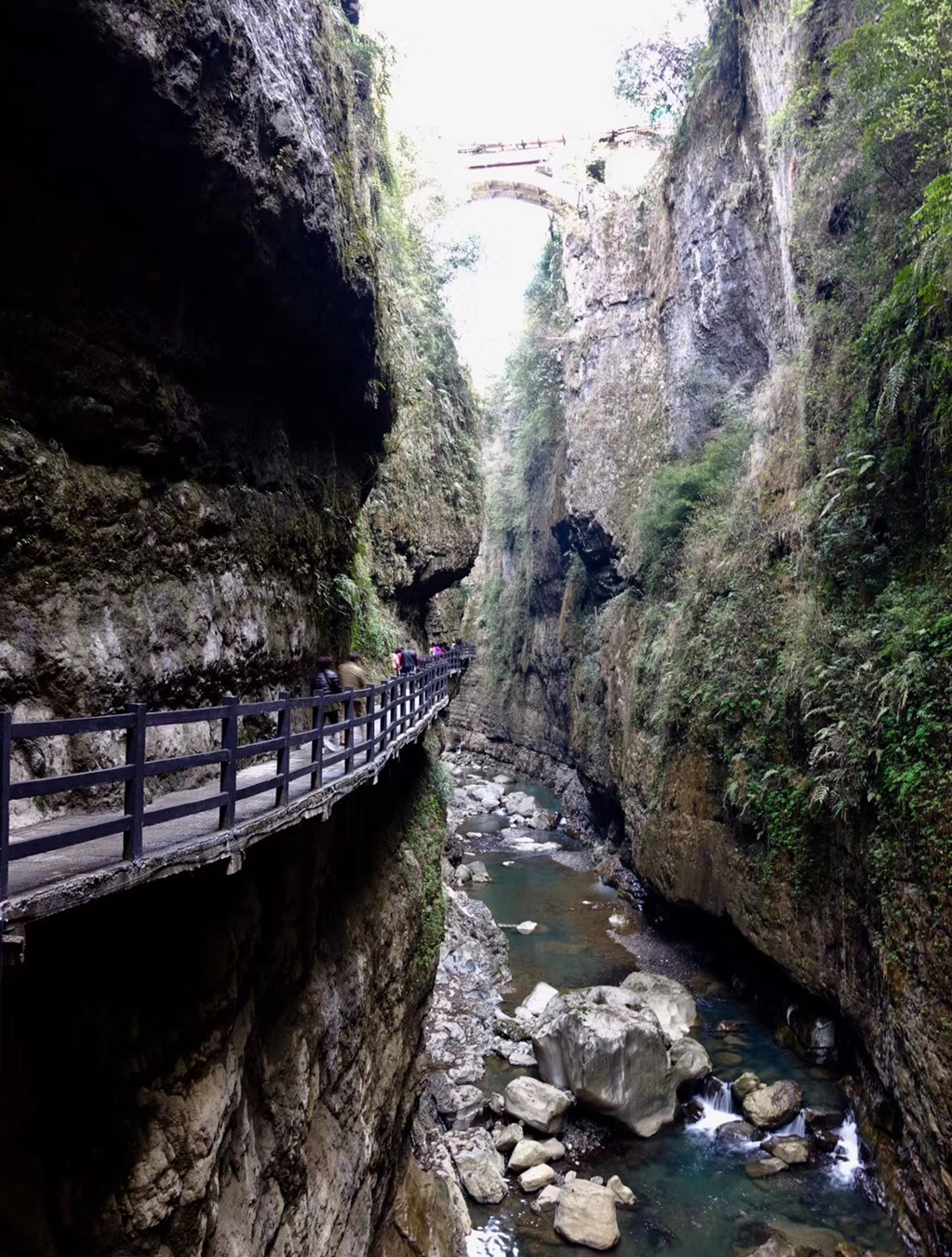 棧道橫掛在海拔約1700米、凈高約300米的絕壁間,往下看異常驚險(xiǎn),往上看則嘆為觀止。李仁奇 攝