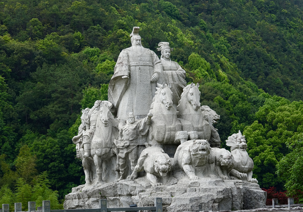 軒轅黃帝南巡雕塑就矗立在鼎湖峰景點入口的十字路口中央。李仁奇 攝