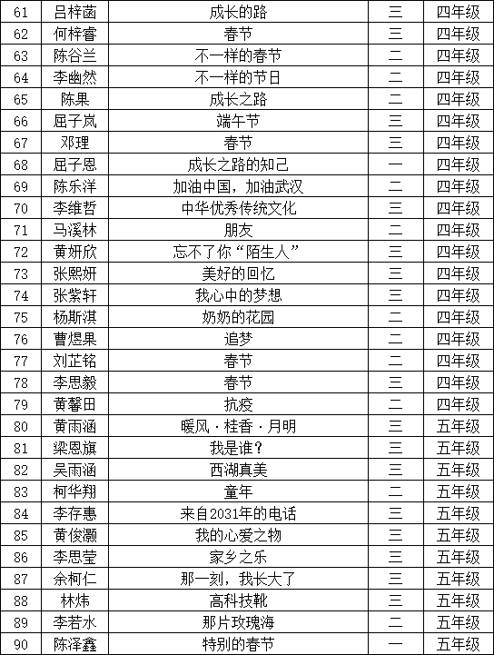 自2021年1月,活動(dòng)征稿啟動(dòng)以來(lái),獲得了深圳市廣大中小學(xué)生、教師、文學(xué)愛(ài)好者的熱烈響應(yīng)積極參與,吸引了深圳百余所學(xué)校的上萬(wàn)人關(guān)注報(bào)名?,F(xiàn)公布寶安區(qū)翻身實(shí)驗(yàn)學(xué)校(東校區(qū))晉級(jí)復(fù)賽名單如下: