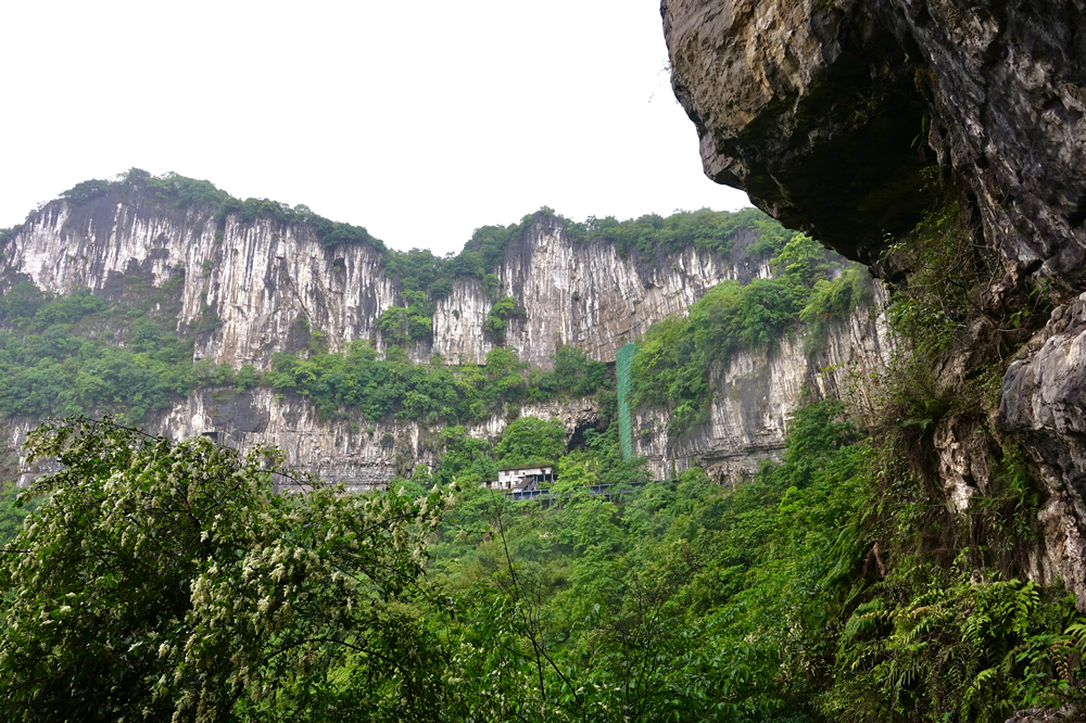 天坑是喀斯特地貌中的一種,它的形成是因?yàn)樗粩嗲治g固體基巖,使溶洞頂部發(fā)生坍塌,最終在地表形成一個(gè)巨大的深坑,這個(gè)深坑就被稱(chēng)為天坑。李仁奇 攝