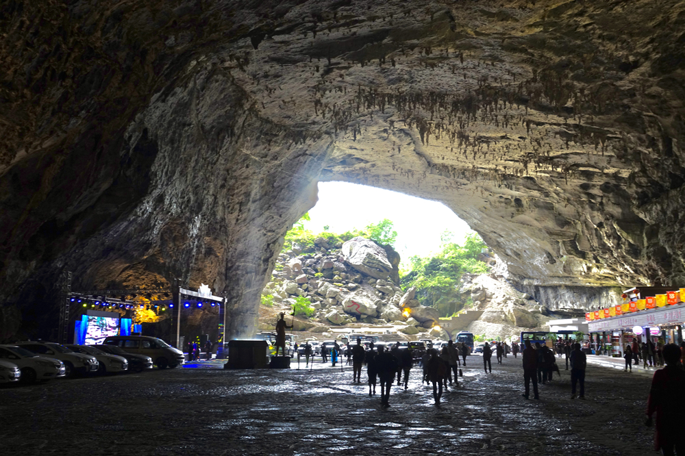 其地面有石林石筍石柱和天坑(大漏斗)地下有空間巨大的溶洞、瀑布和形態(tài)多樣的鐘乳石及暗河。李仁奇 攝