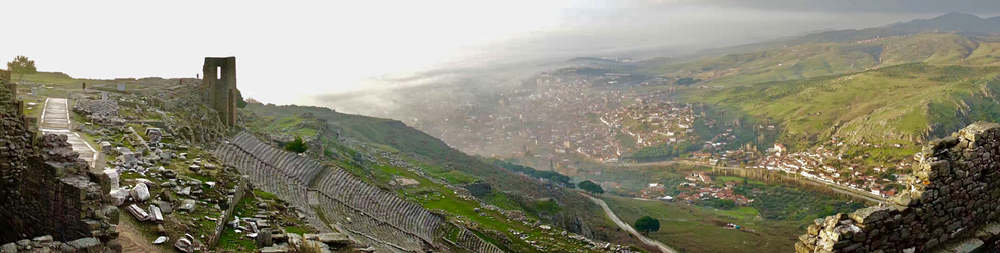 羅馬帝國時(shí),城市遷到山下的平原。山頂和山坡高處的古跡包括一座劇場、雅典娜神廟以及宙斯大祭壇。李仁奇 攝