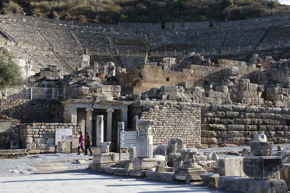 大劇場始建于公元前三世紀(jì)的希臘時(shí)代,羅馬時(shí)期進(jìn)行擴(kuò)建和完善,是座可容納25000名觀眾的半圓形建筑,是上演各種劇目以及市民參加公民會(huì)議的場所,還是角斗士與猛獸對決的場地。李仁奇 攝