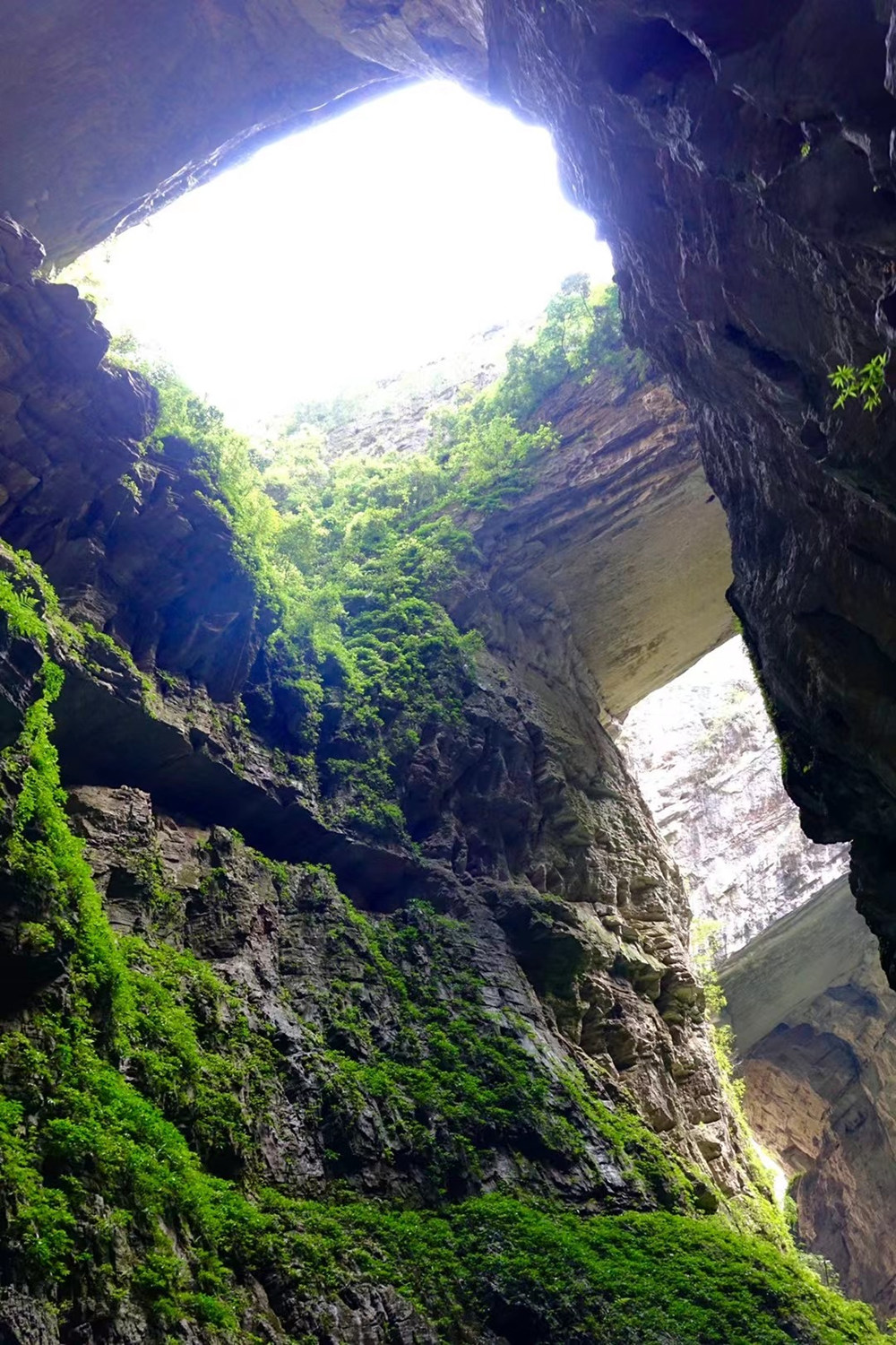 “暗河”指的是這條河流穿行溶洞的部分。里面漆黑一片,伸手不見五指,但中段有“蒼天有眼”(實(shí)為天生橋)奇觀,末端有形似“天下第一刀”的天空,令人稱奇。李仁奇 攝