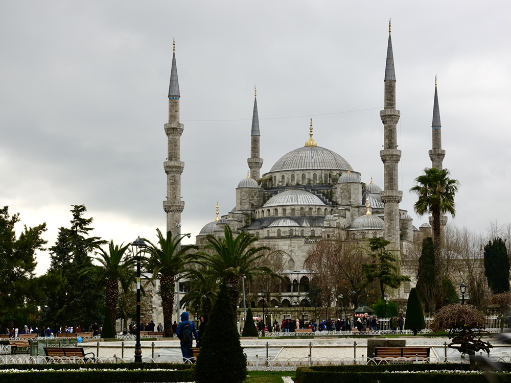 公元1453年,奧斯曼土耳其蘇丹下令將將君士坦丁堡改名為伊斯坦布爾,將索菲亞大教堂改成阿雅索菲亞清真寺,并將教堂內(nèi)所有拜占庭的壁畫全部用灰漿遮蓋住,所有基督教雕像也被搬出,還在周圍修建了4個高大的宣禮塔。李仁奇 攝
