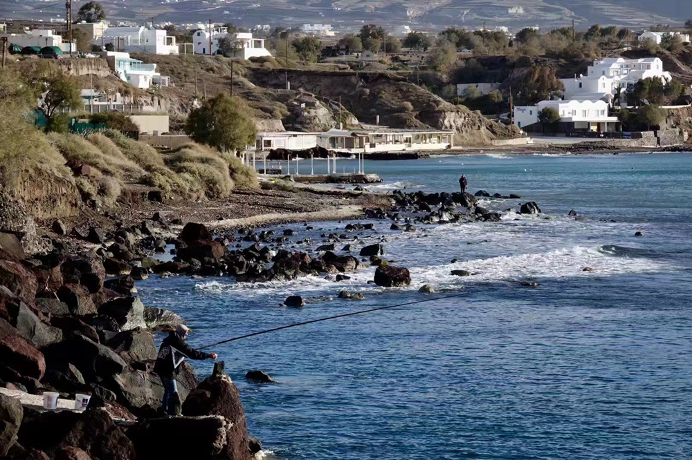 圣托里尼由3個(gè)小島組成,其中兩個(gè)島有人居住,中間的1個(gè)是沉睡的火山島。歷史上,這里的火山曾多次爆發(fā),以公元前1500年的一次最為劇烈。李仁奇 攝