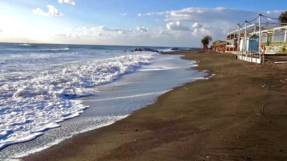 現(xiàn)在的圣托里尼島是希臘最著名的旅游勝地,以其充足的陽光,宜人的地中海氣候、獨(dú)特的地形地貌和藍(lán)白色的建筑吸引著全球的游客。李仁奇 攝
