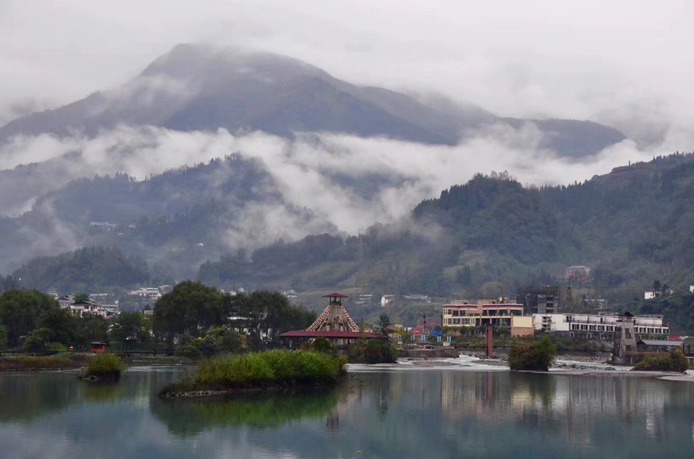 古鎮(zhèn)掩映在青山綠水之間,山上云蒸霧繞,山下新房林立,湖光山色,儼然是一幅秀美的水墨畫。李仁奇 攝