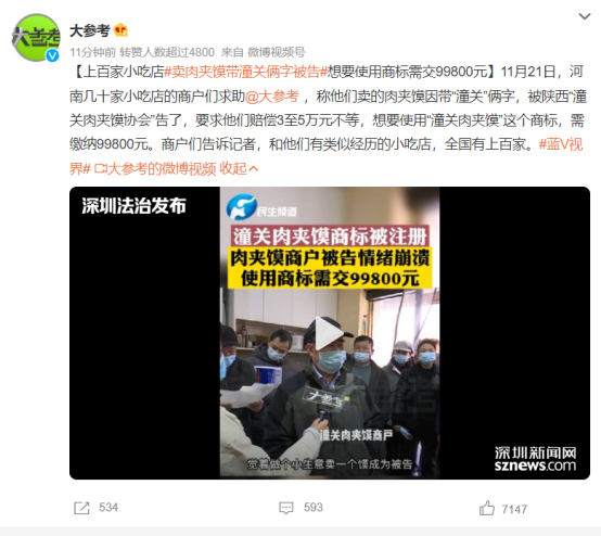 (相關報道:讓眾多店家崩潰的潼關肉夾饃商標許可費國家知識產(chǎn)權局回應了)