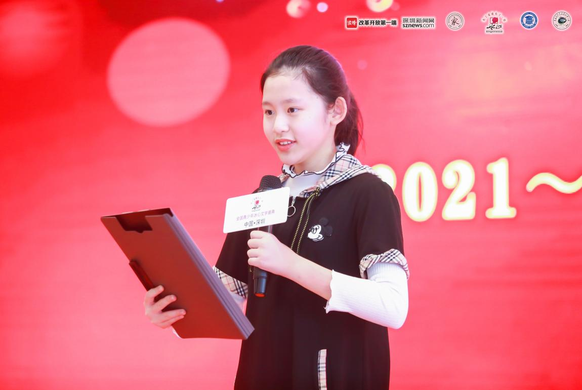 《中華文化現(xiàn)行倡導(dǎo)者》和《中華文化文學(xué)特長(zhǎng)生人才庫》代表:荔園小學(xué)通新嶺校區(qū)李睿頤帶來原創(chuàng)詩朗誦《如果我能穿越六維空間就能展現(xiàn)邊陲小鎮(zhèn)——深圳的歷史變遷》