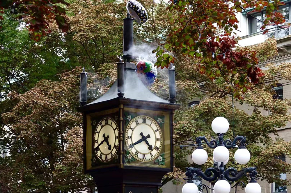 蒸汽鐘,顧名思義是用蒸汽作動力的鐘,鐘盤的頂端有一大四小5個汽笛,每隔15分鐘,汽笛都會嗚叫,并噴出蒸汽。每逢整點,則發(fā)出悅耳的音樂聲。李仁奇 攝