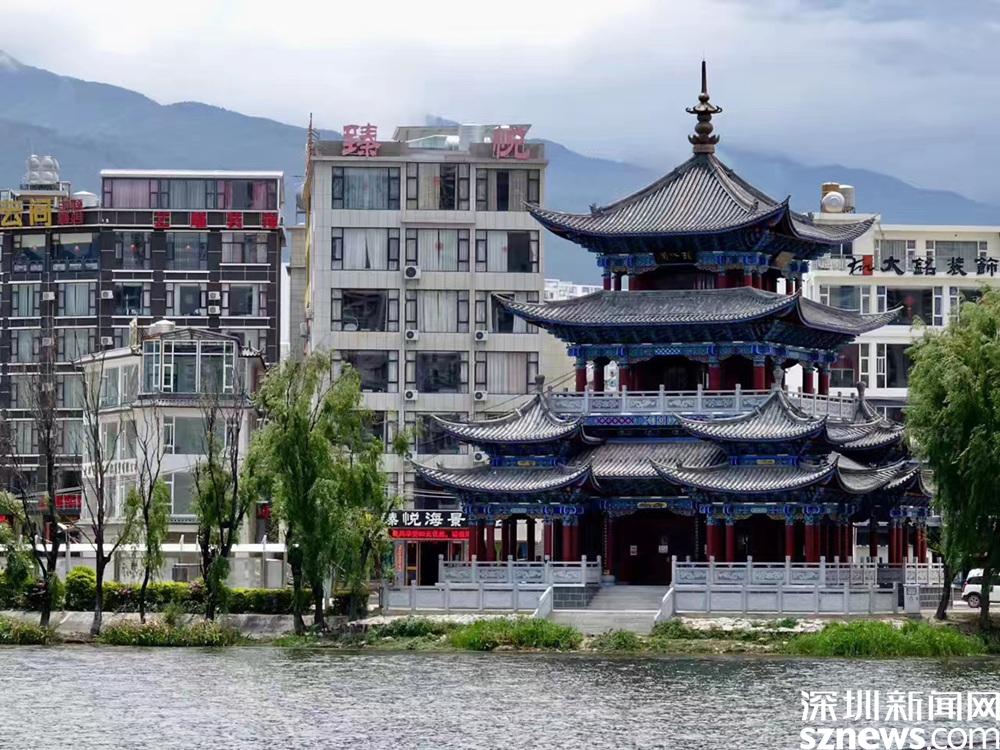 海心亭長廊一直延伸到洱海中,感覺自己與洱海的距離近了。李仁奇 攝